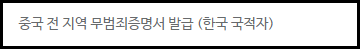 중국인, 한국인 무범죄증명서 전부 신청 가능하오니