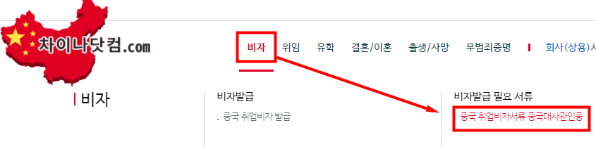 차이나닷컴.com 홈페이지에서는 취업비자서류에 대한 발급부터 번역+공증촉탁대행+