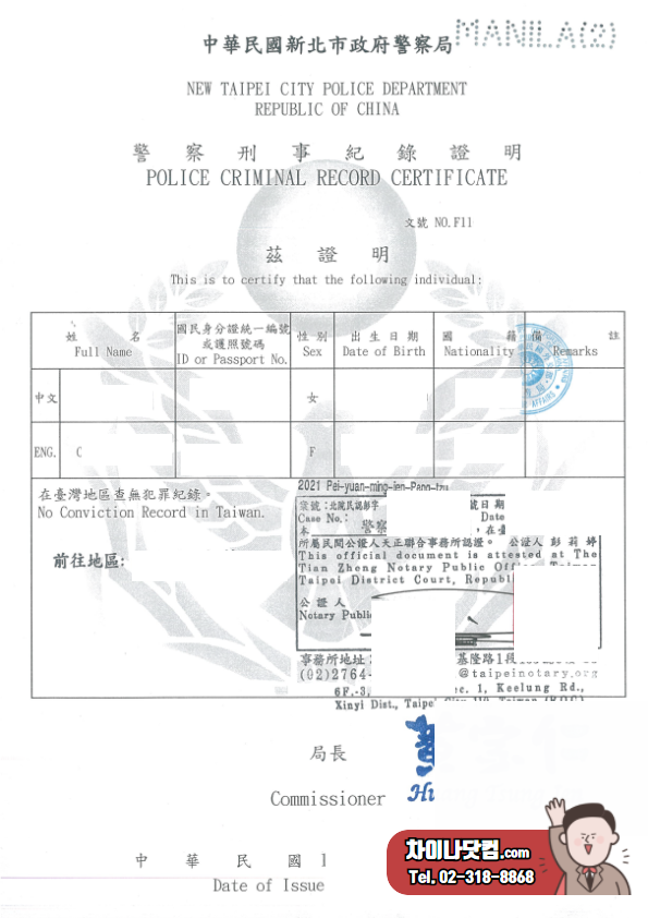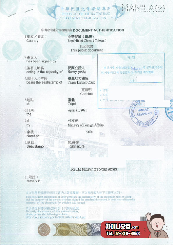 대만 범죄경력증명서 한국 영사인증 원스톱 서비스!