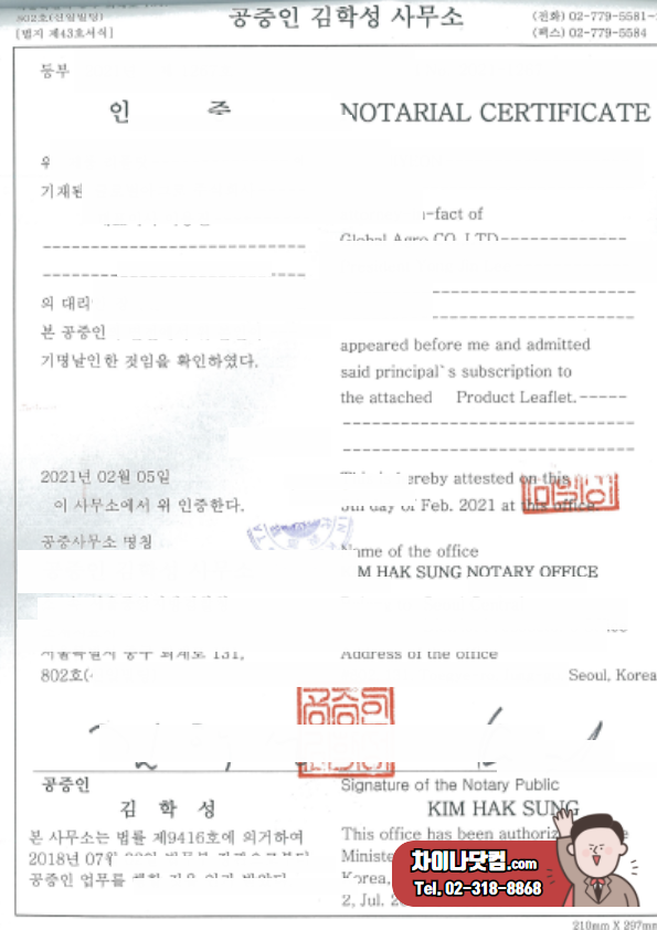 원본대조공증 및 번역공증으로 진행되어, 외교통상부인증을 거쳐