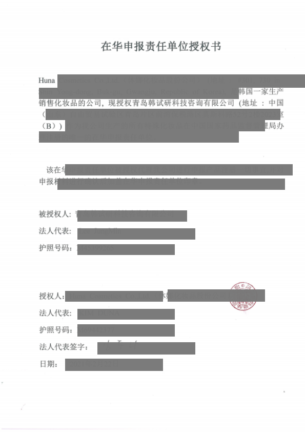 당사의 경우에는 위 비안등록에 필요한 수권서에 대한 중국대사관인증
