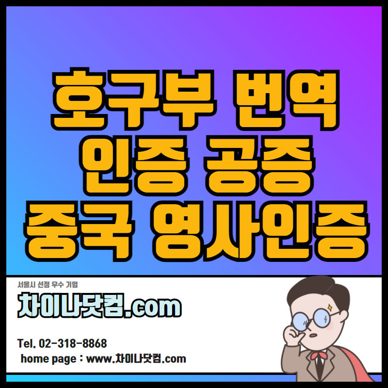 차이나닷컴에서는 호구부 번역공증 촉탁대행 및 현지 한국영사인증까지